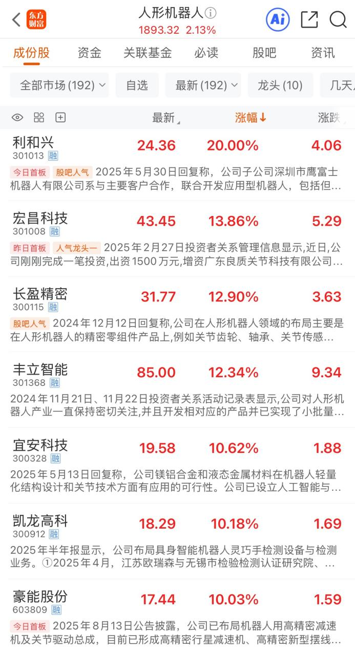 人形机器人概念集体走强!年内最高涨近14倍 平均涨幅超89%