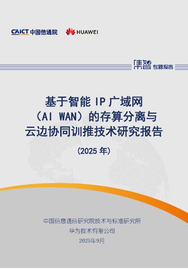 - 中国信通院标准所联合发布《基于智能IP广域网(AI WAN)的存算分离与云边协同训推技术研究报告(2025年)》