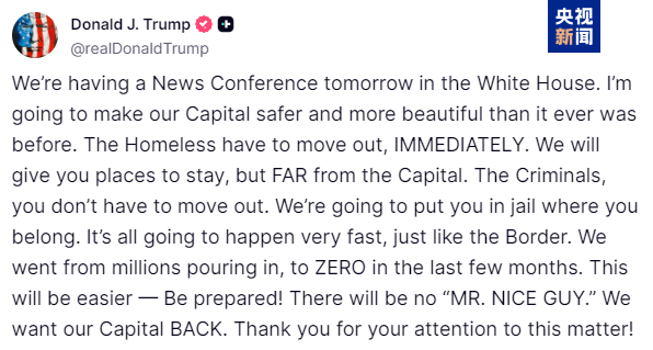 “夺回首都” 特朗普最新发声!所有无家可归者将被立即迁离市区
