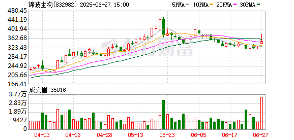 公告次日,锦波生物股价涨幅一度达到18.26%。截至当日收盘,公司股票收涨8.67%,总市值超过400亿元。