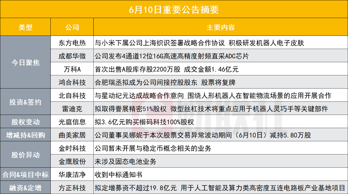 研发机器人电子皮肤!80亿核电概念股与小米下属公司签署战略合作协议|盘后公告集锦