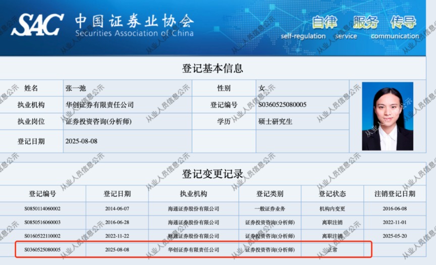 中国证券业协会从业人员公示信息显示,电新行业资深研究老将张一弛于2025年5月20日从财通证券离职,并于2025年8月8日入职华创证券。据中国基金报记者最新了解,张一弛拟任华创证券研究所副所长,目前正在走公司流程。